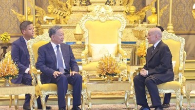 Chủ tịch nước Tô Lâm hội kiến Quốc vương Norodom Sihamoni trong chuyến thăm cấp Nhà nước sang Campuchia tháng 7/2024. (Ảnh: TTXVN)