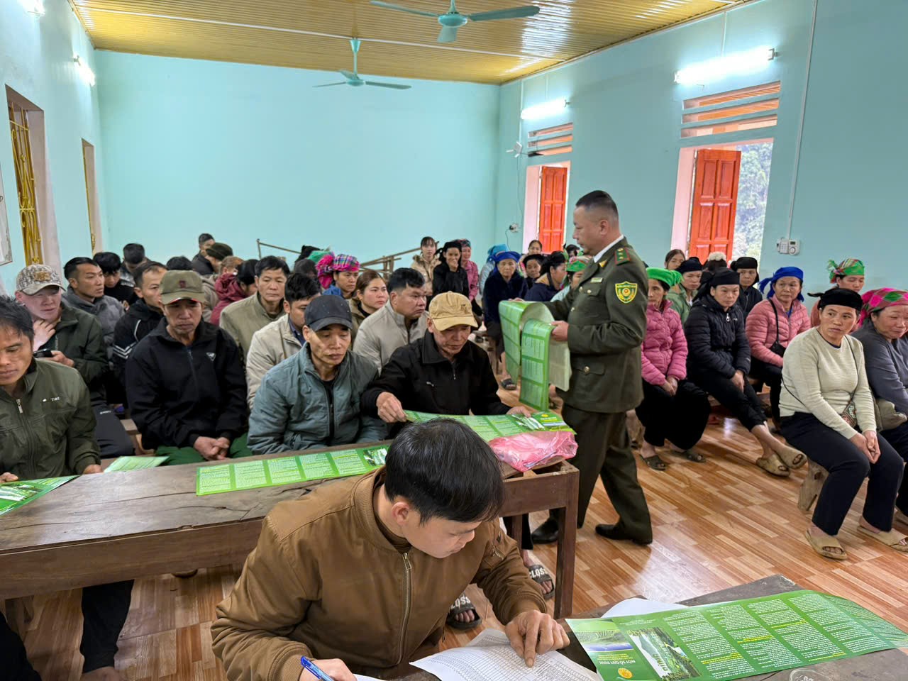 Kiểm lâm địa bàn phát tờ rơi, hướng dẫn Nhân dân tại nhà văn hóa thôn