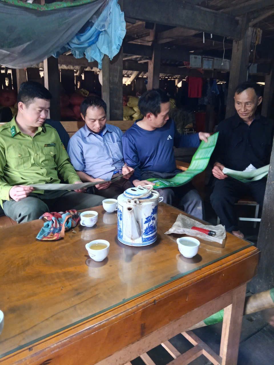 Kiểm lâm địa bàn đến từng hộ dân tuyên truyền, ký cam kết bảo vệ rừng.