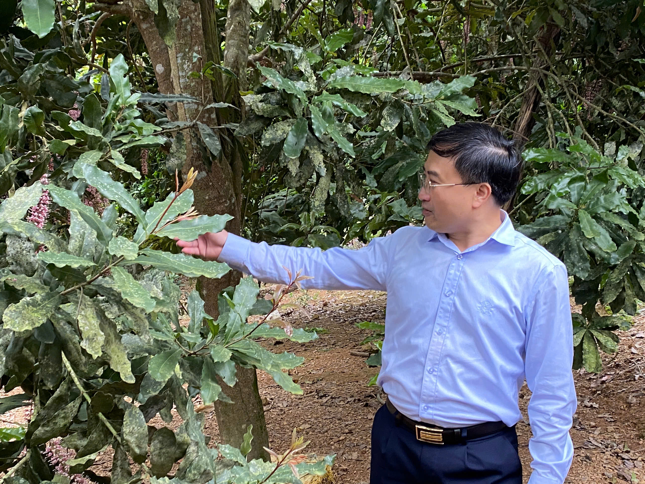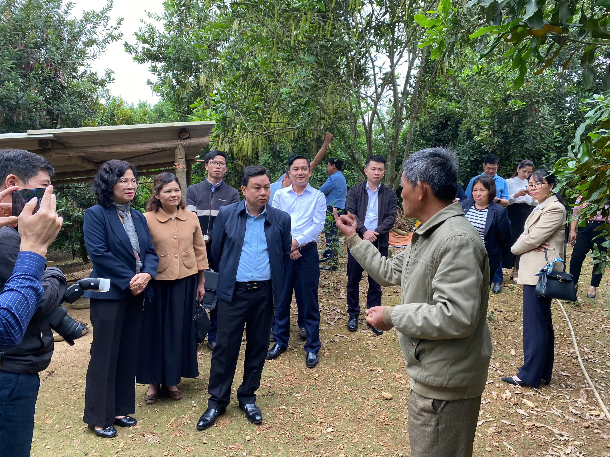 Đoàn công tác đến tham quan và trao đổi với người nông dân, doanh nghiệp tại vườn Mắc ca