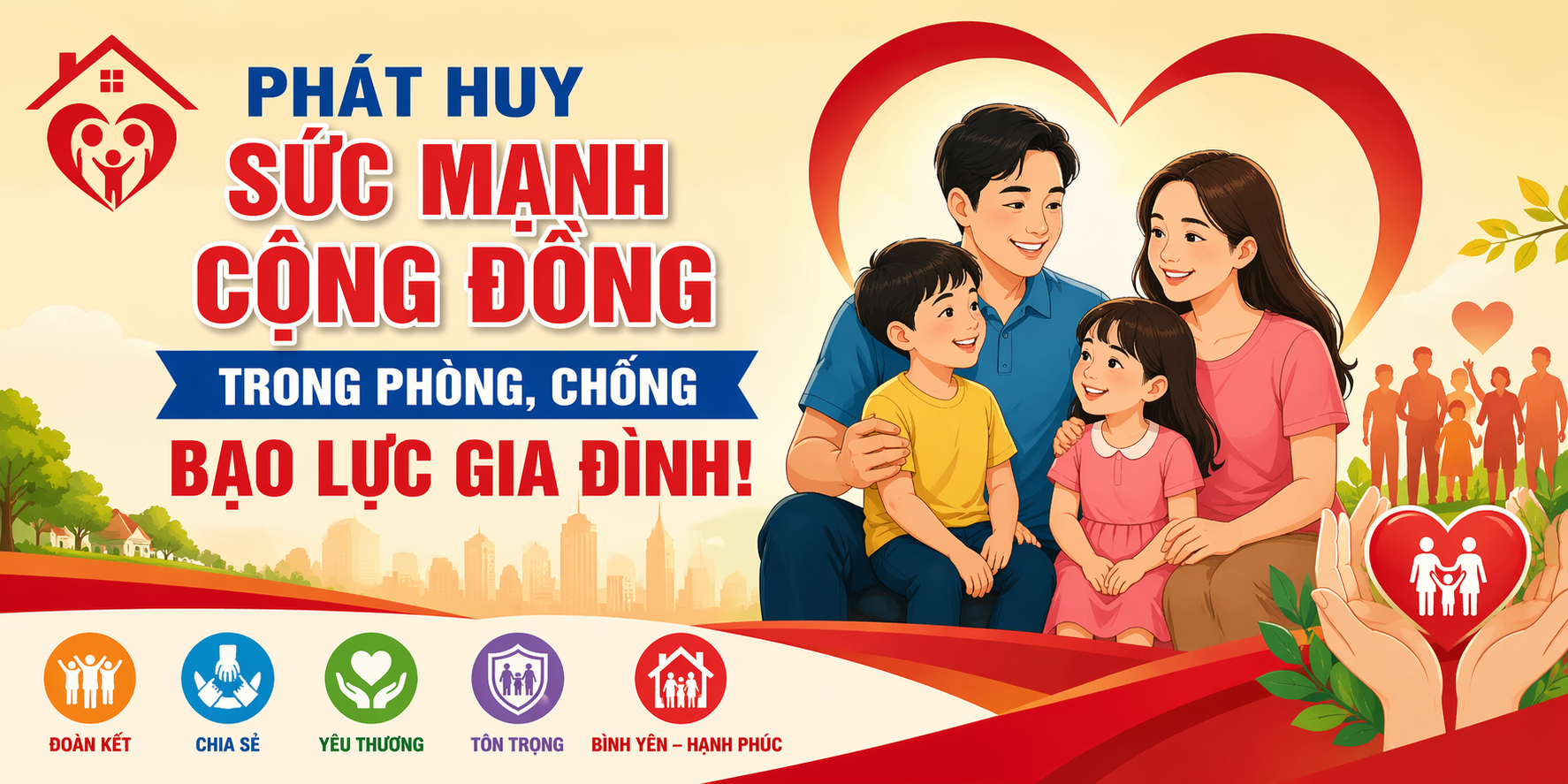 Hưởng ứng Tháng hành động quốc gia về phòng, chống bạo lực gia đình năm 2026 với chủ đề "Chấm dứt bạo lực, vun đắp yêu thương". Hình minh họa