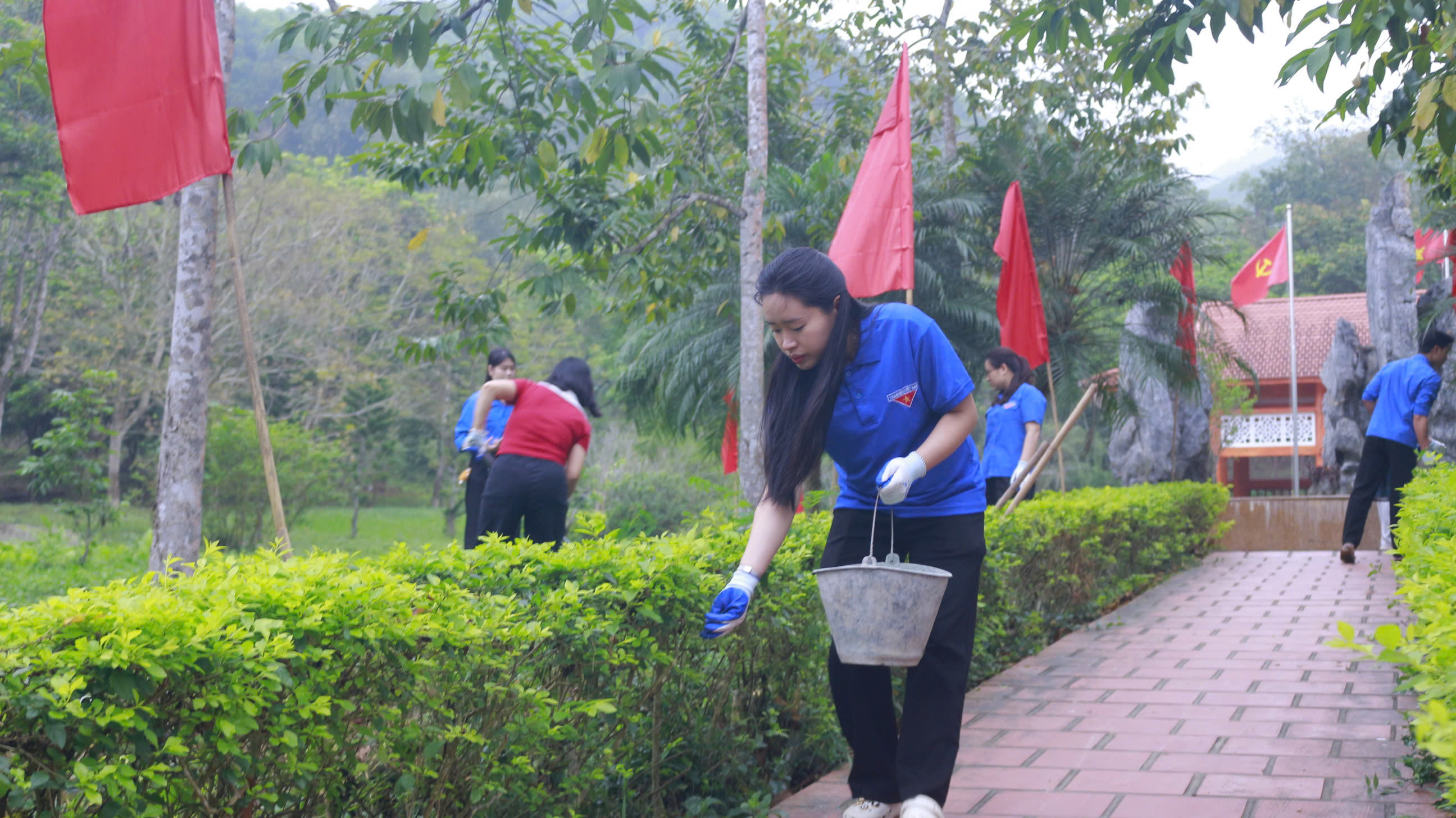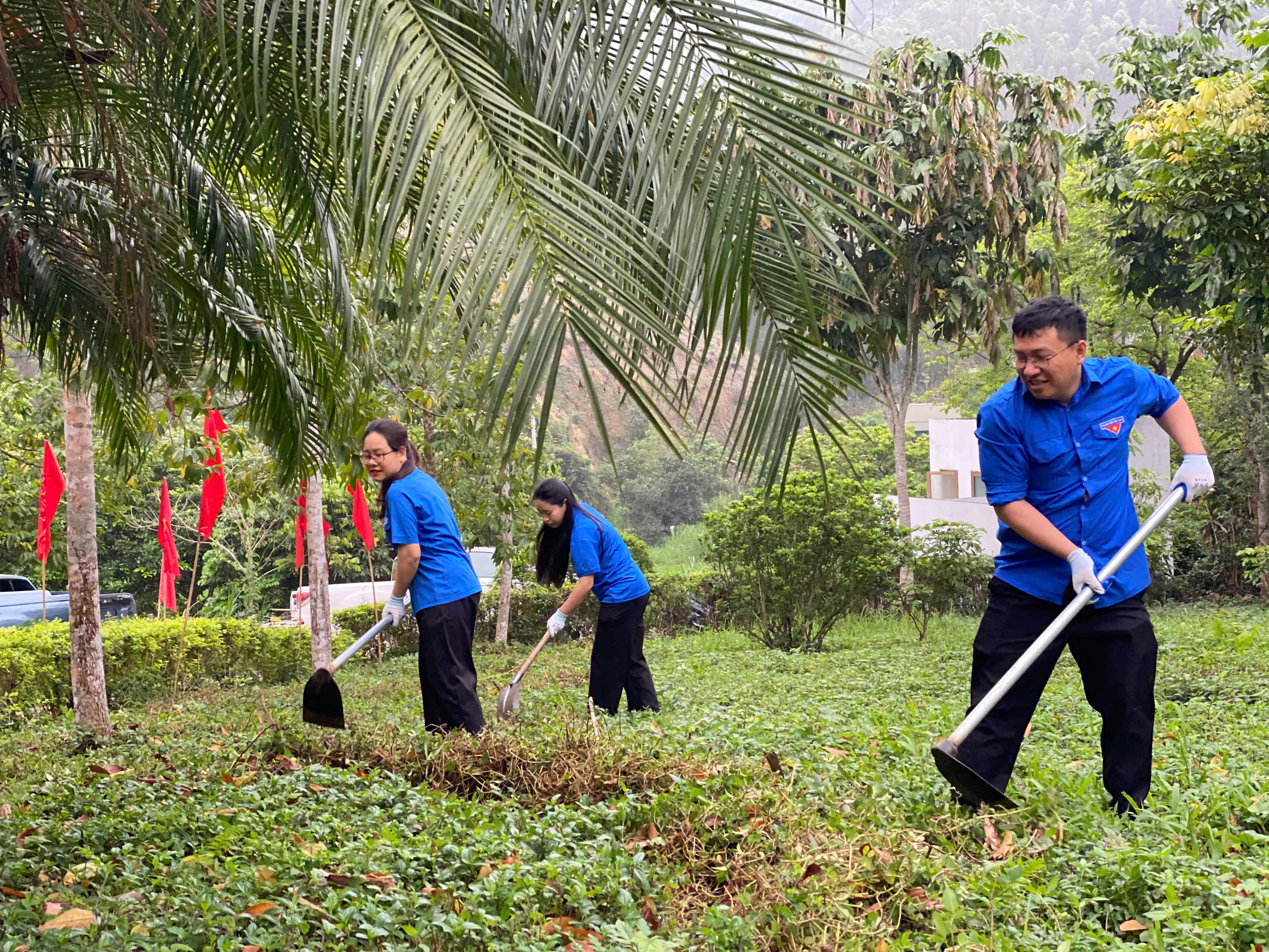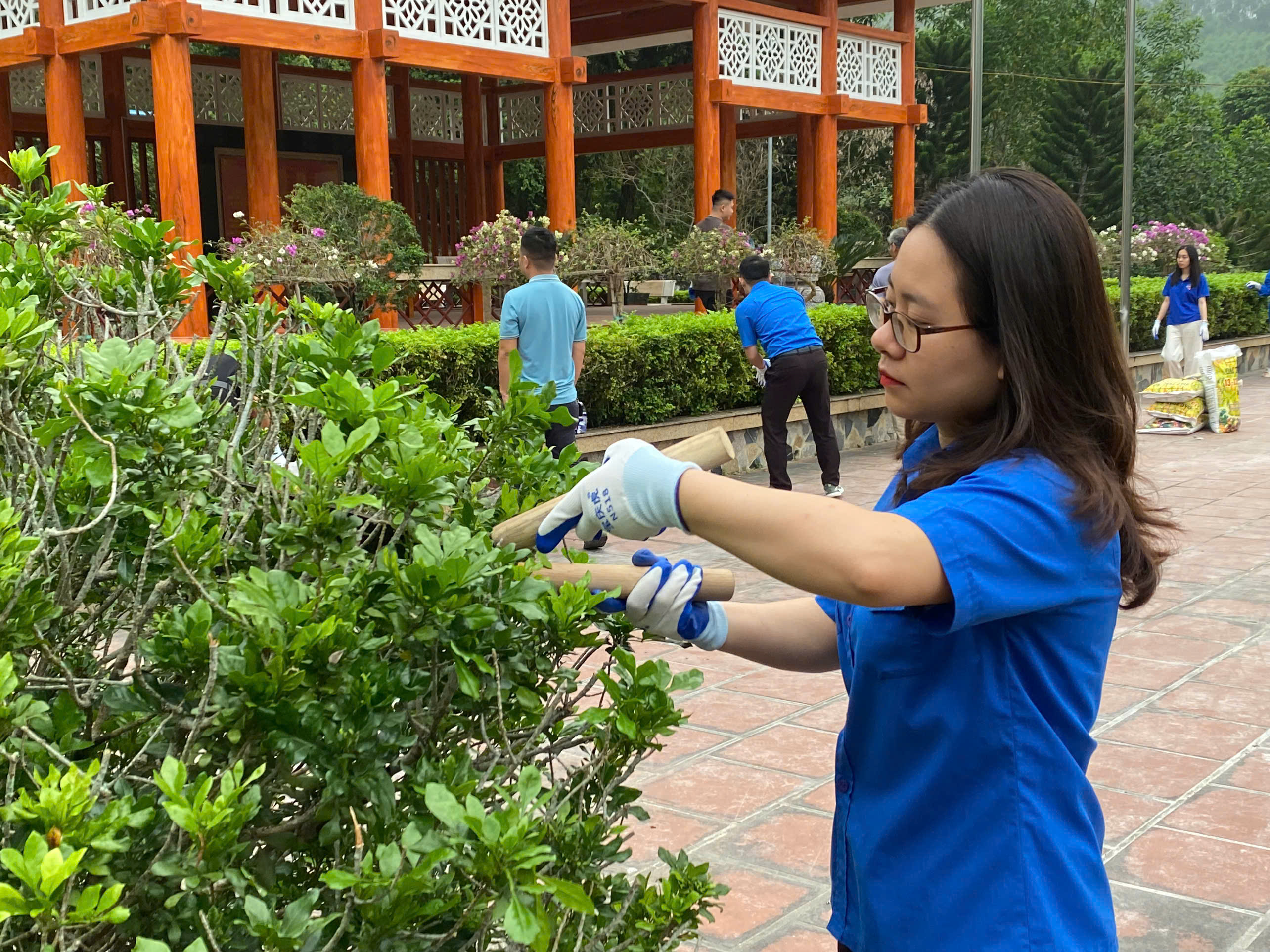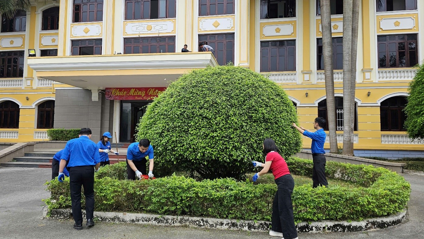 Một số hình ảnh Đoàn viên thanh niên lao động tại Khu Di tích và Khuôn viên Sở Nông nghiệp và Môi trường