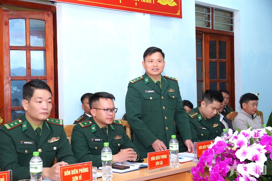 Lãnh đạo Đồn Biên phòng Lũng Cú (Bộ đội Biên phòng tỉnh Tuyên Quang) phát biểu tại lễ ký kết quy chế phối hợp.