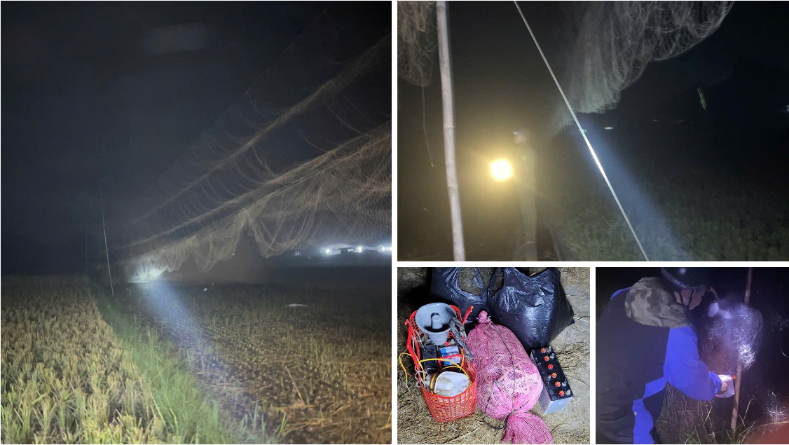 Hạt Kiểm lâm khu vực VII, Chi cục Kiểm lâm tỉnh Tuyên Quang phối hợp với lực lượng chức năng xã Bắc Quang thu giữ lưới cước mờ của người dân bẫy chim trên cánh đồng thuộc địa bàn xã vào ban đêm.